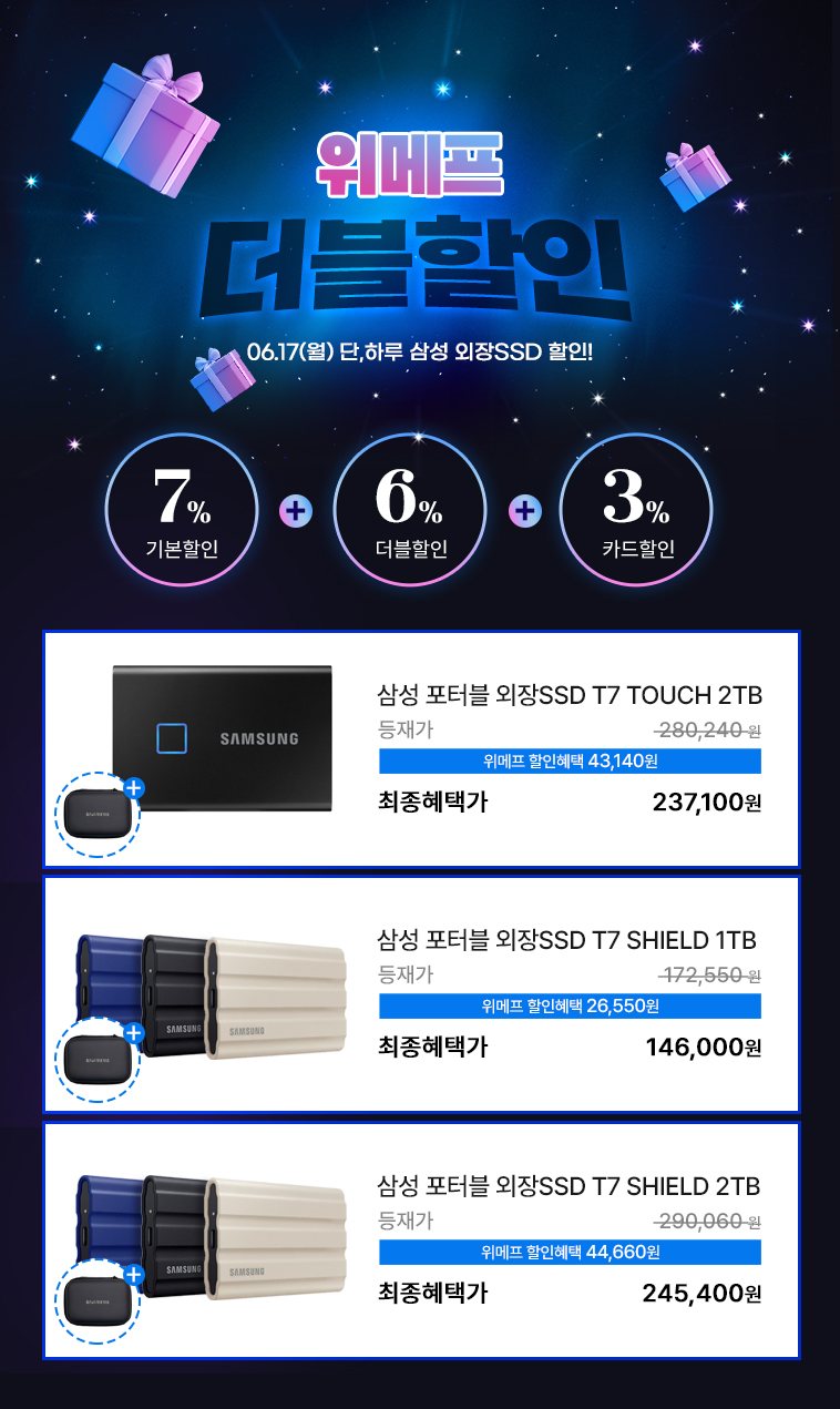 위메프 더블할인으로 삼성전자 외장SSD 최대 16% 할인! : 6월 17일 단 하루!