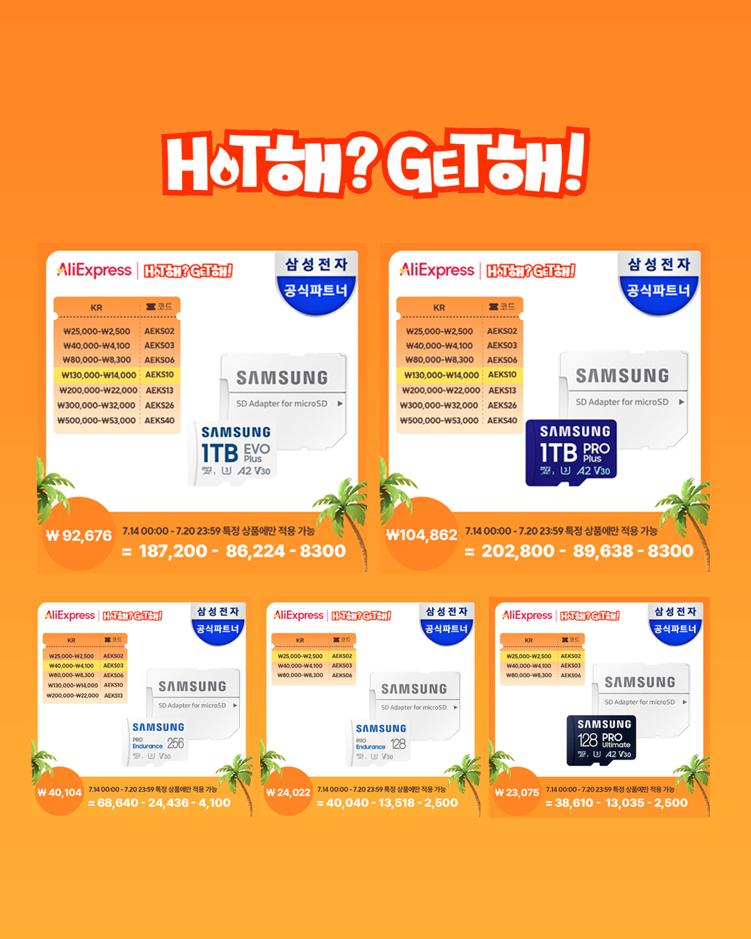 알리익스프레스 삼성 마이크로SD카드 할인! HOT하게 GET하자! (7월 14일 ~ 7월 20일)